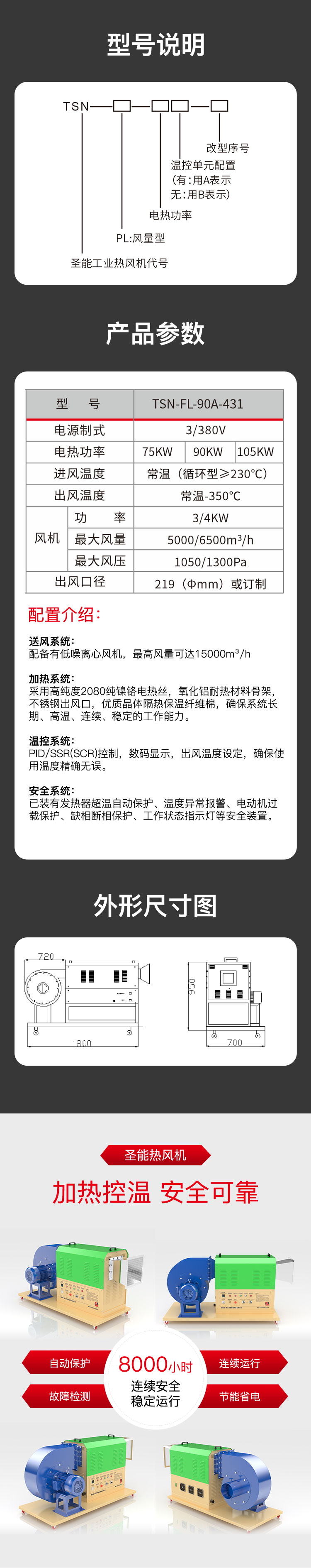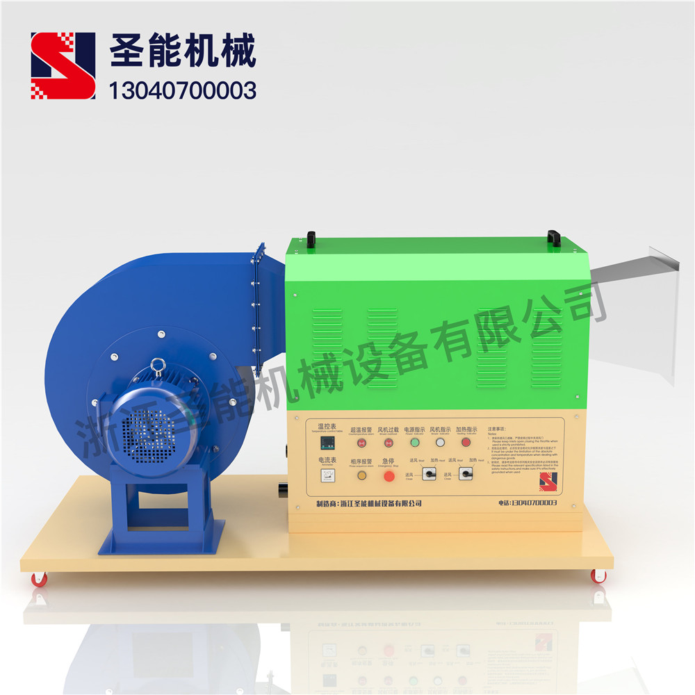 風(fēng)量型熱風(fēng)機(jī)主要由空氣加熱器和離心風(fēng)機(jī)組成??諝饧訜崞骷訜岙a(chǎn)熱散熱,由離心風(fēng)機(jī)將熱量輸出,從而調(diào)節(jié)空間溫度,風(fēng)量型熱風(fēng)機(jī)中加熱元件由2080鎳鉻絲加工成螺旋導(dǎo)管組成,從而發(fā)熱快、溫度效果好、工作風(fēng)量大壓力較低。根據(jù)使用場(chǎng)所可分為:家用風(fēng)量型熱風(fēng)機(jī)和農(nóng)業(yè)用風(fēng)量型熱風(fēng)機(jī)。從而家用和農(nóng)業(yè)用風(fēng)量型熱風(fēng)機(jī)需根據(jù)客戶使用情況來(lái)進(jìn)行風(fēng)機(jī)和加熱功率的配比,望請(qǐng)客戶采購(gòu)時(shí)將現(xiàn)場(chǎng)工況詳細(xì)說(shuō)明。